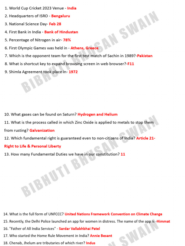 100 Miscellanous One Liners (SET1) PDF Travel