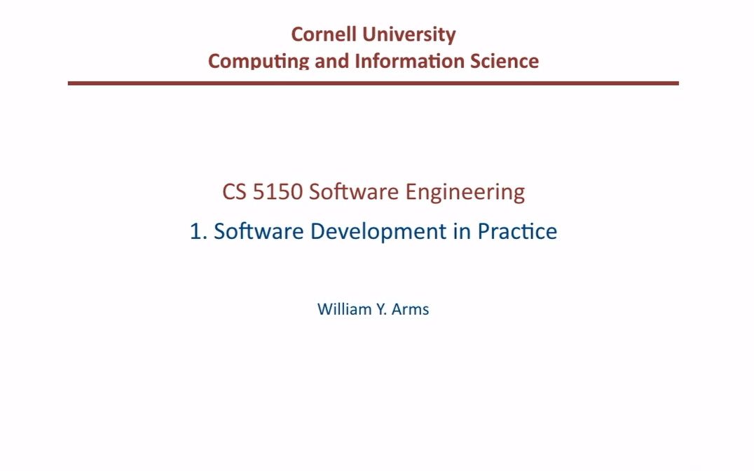 软件工程课程(康奈尔大学,无字幕):Software Engineering;相似课程推荐:加州大学伯克利分校 CS 169、CMU 15