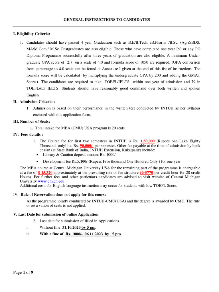 MBACMU Instruction To The Candidates PDF Master Of Business