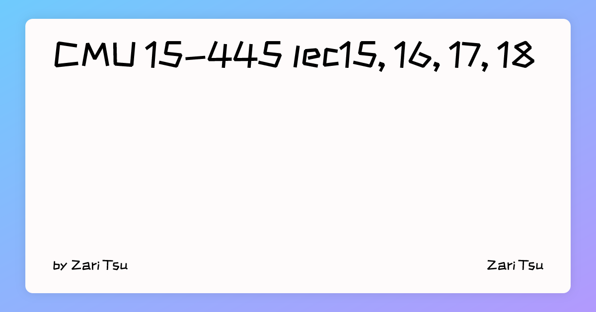 Schedule CMU 15445/645 Intro to Database Systems (Fall 2018