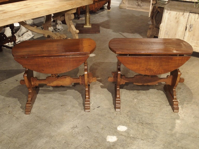 Pair of Antique Walnut Drop Leaf Side Tables from Italy, circa 1900 at
