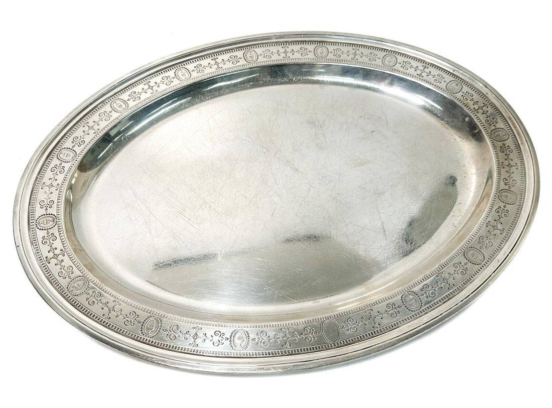 Tiffany & Co. Sterling Silver 18 Inch Oval Tray 20182b / 2510, 1927