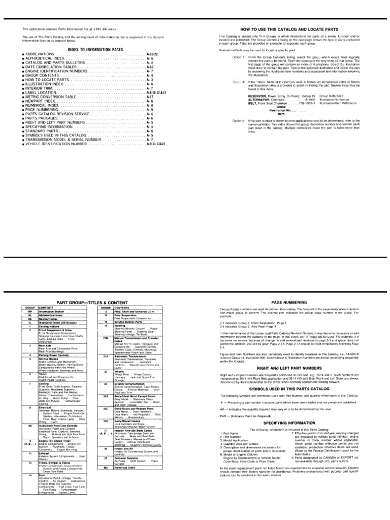 Jeep XJ YJ CJ SJ Part Catalog Manual 19811986 PDF DOWNLOAD