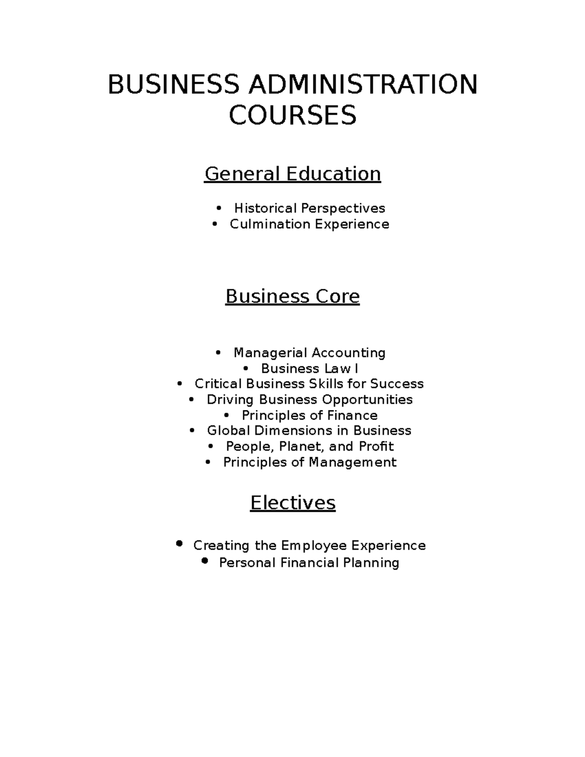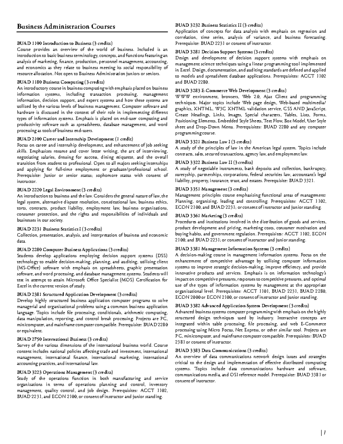 Business Administration Course Descriptions