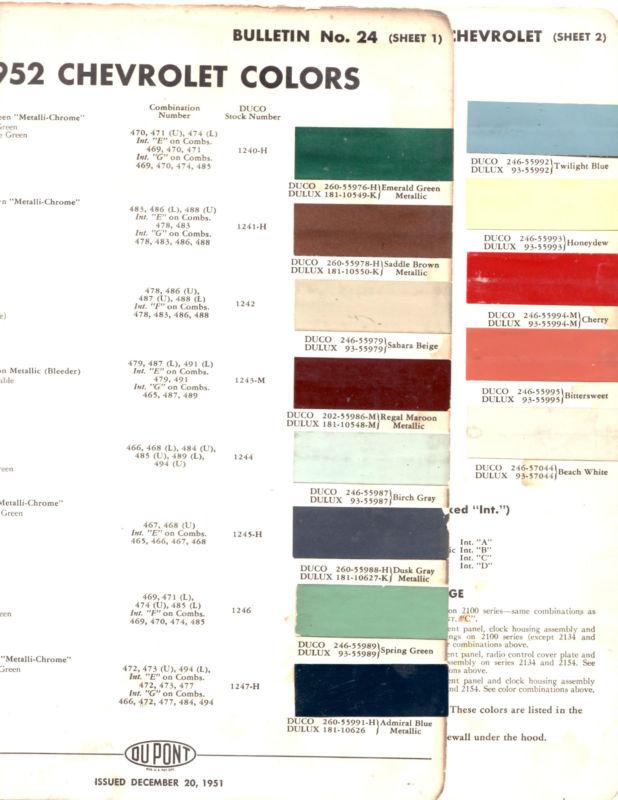 Find 1952 CHEVROLET FLEETLINE STYLELINE DELUXE 52 PAINT CHIPS DUPONT 3