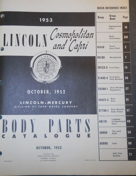 www.hortlund.se 1953 Lincoln Cosmopolitan and Capri Body Parts Catalogue