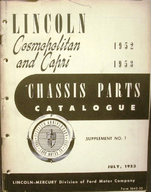 Lincoln Cosmopolitan 1952 and Capri 1953 Chassis Parts Catalogue