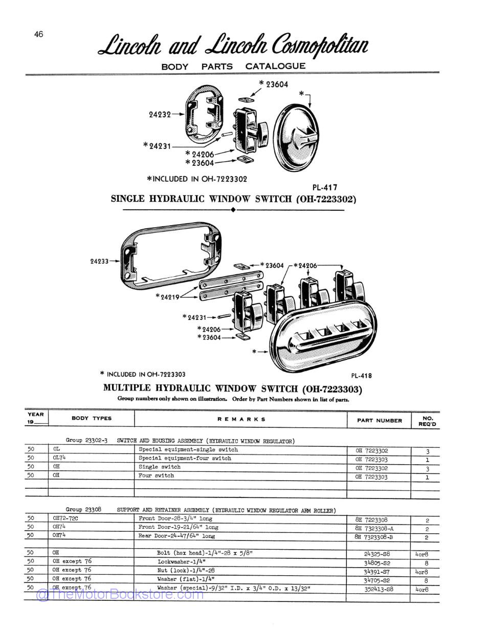 1951 Lincoln and Cosmopolitan Body Parts Catalog Andrew's Automotive