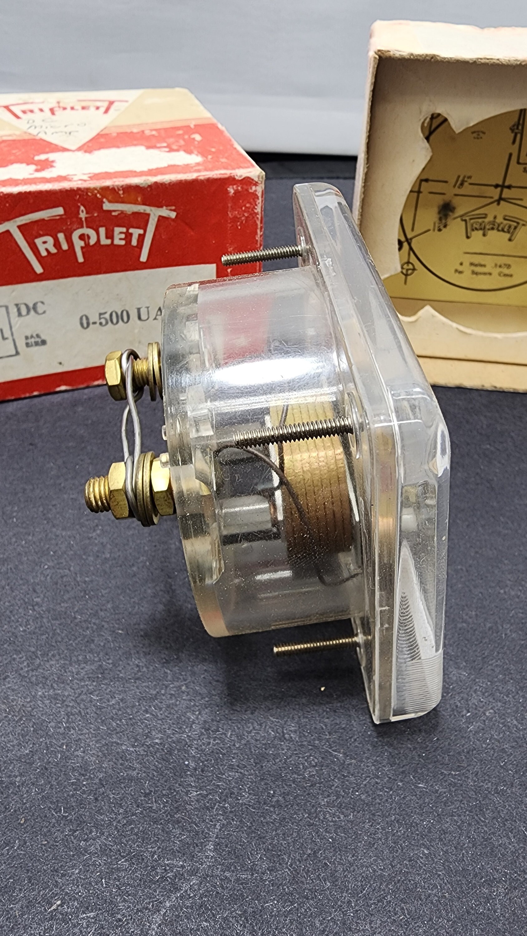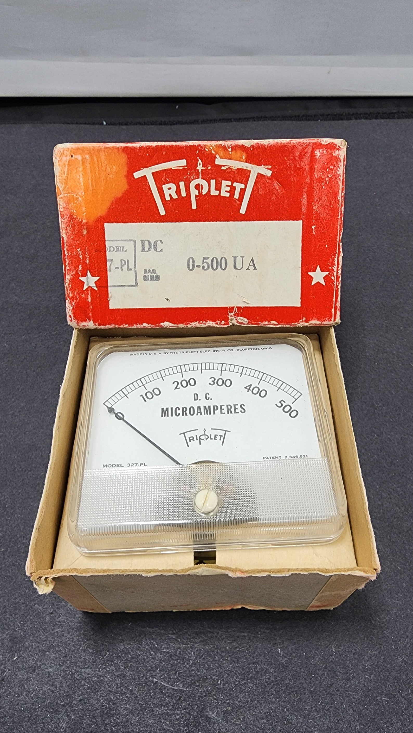 Vintage 1960's Triplett Model 327PL 500madc Panel Meter New in Box