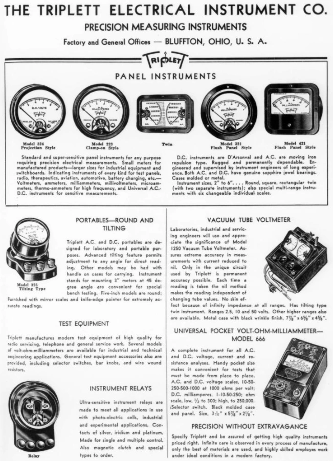 1943 Ad Triplett Combat Line Electrical Measuring Instruments World Wa