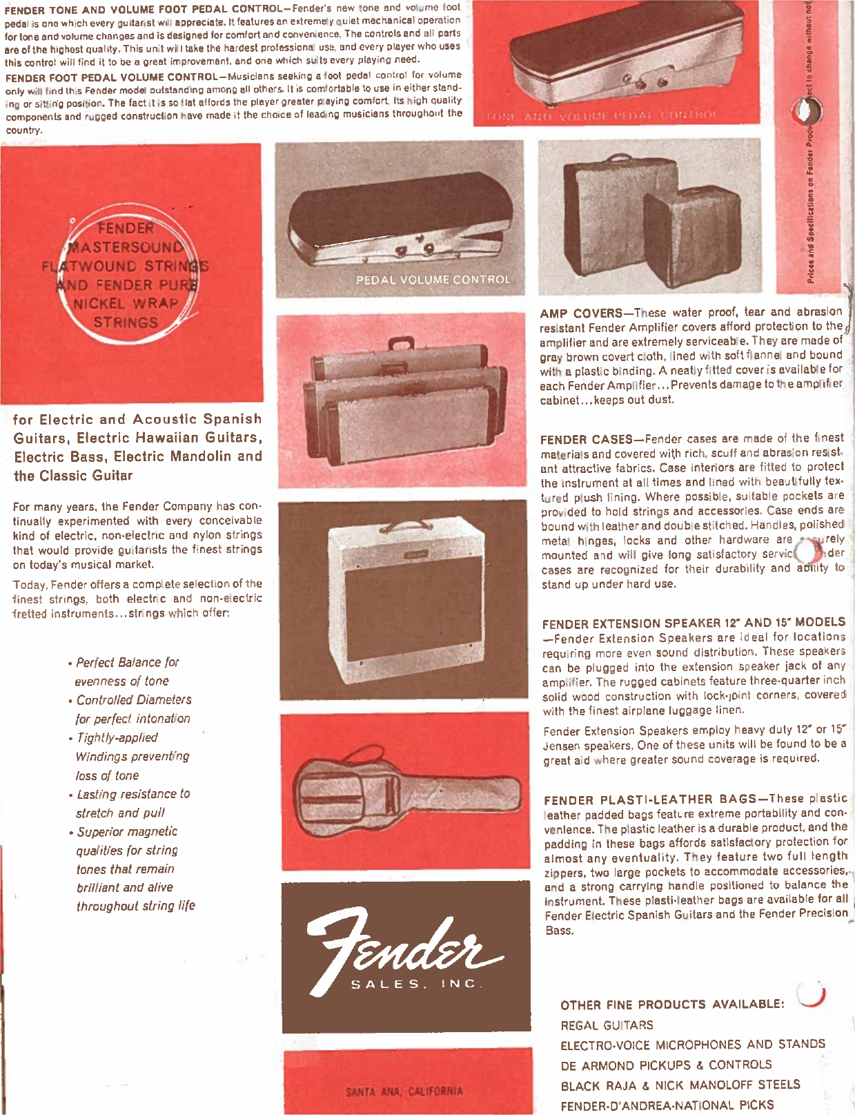 1963 1964 Fender Guitar Catalog Fender cases, amp covers, strings and