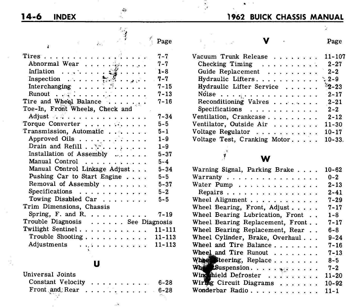 1962 Buick Chassis Service Manual Index Page 6 of 6