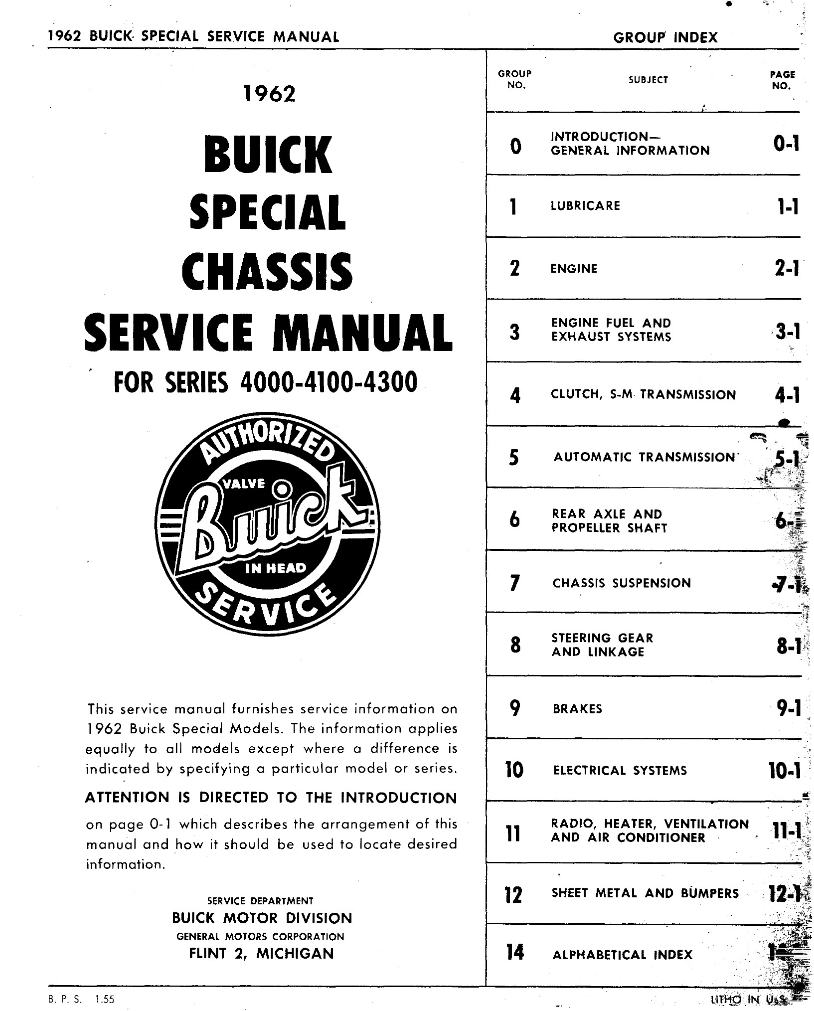 Service Manual for 1962 Buick Special and Skylark DPRGM1662SSM