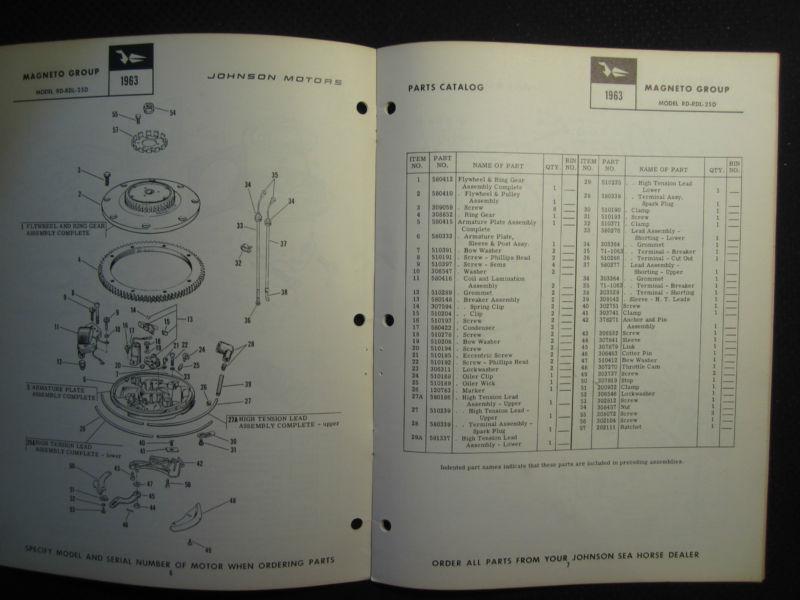 Purchase 1963 Johnson Outboard Motor 40 HP Parts Catalog Manual Sea