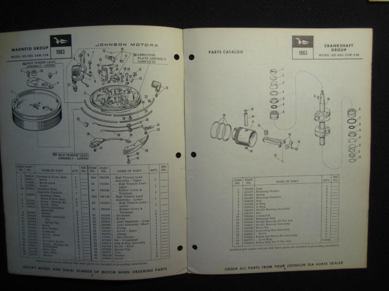 Factory 1963 Johnson Outboard Parts Catalog 10 HP QD QDL 24M eBay