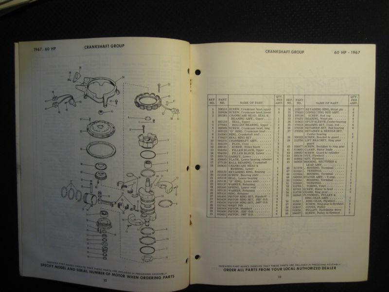 Sell 1967 Johnson Outboard 60 HP Parts Catalog Manual Sea Horse VX VXL
