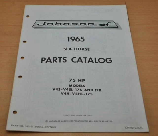 1965 Johnson 75 HP V4A17S V4AL17S Parts Catalog eBay