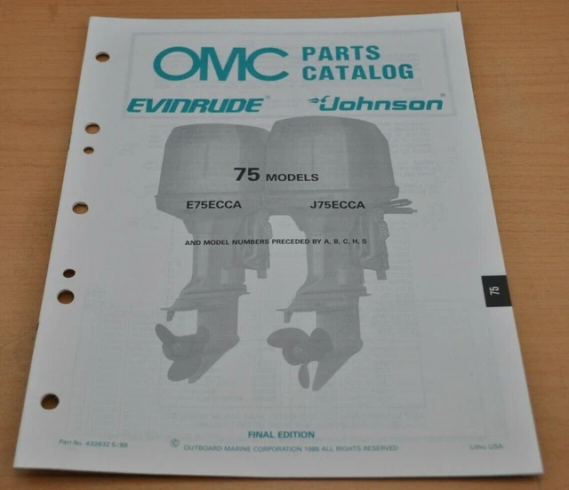 OMC 75 MODELS Johnson Evinrude Motor Bootsmotor Ersatzteilliste Parts