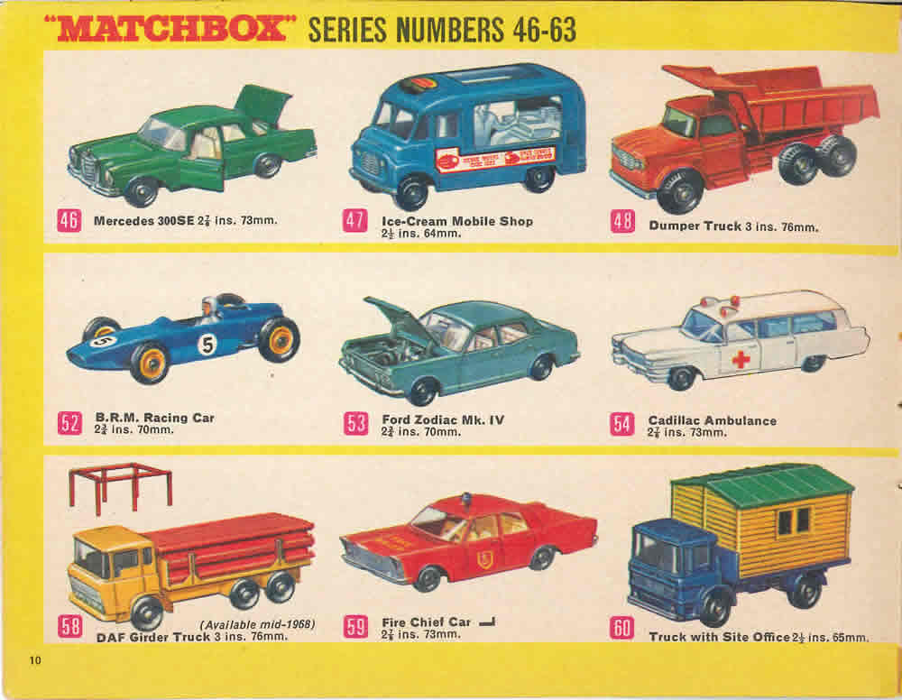 Matchbox Lesney 1968 catalog page 10, Regular Wheels 46, 47, 48, 52, 53