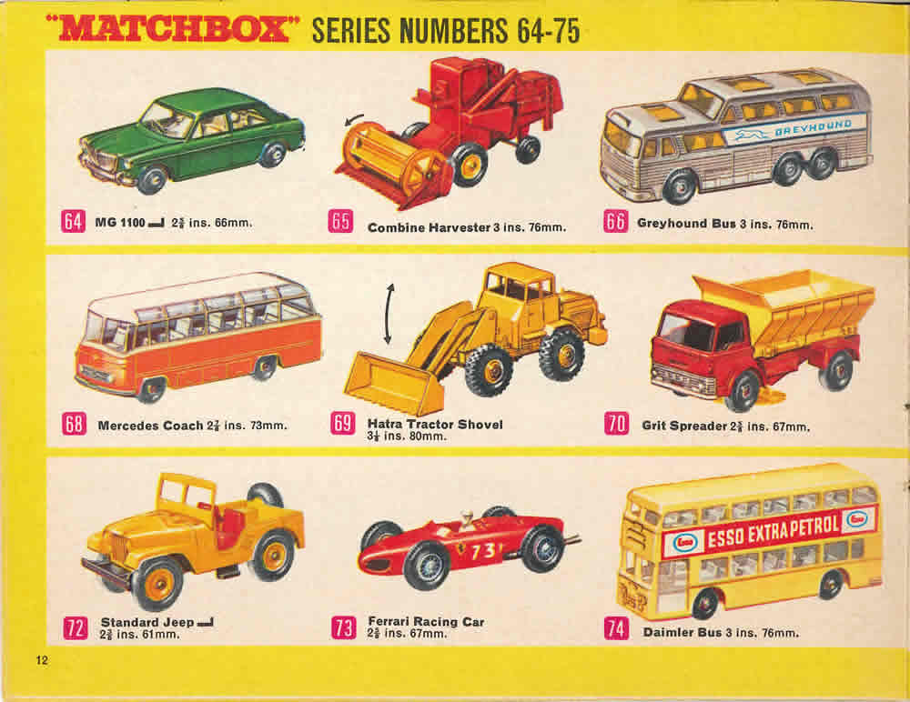 Matchbox Lesney 1968 catalog page 12, Regular Wheels 64, 65, 66, 68, 69