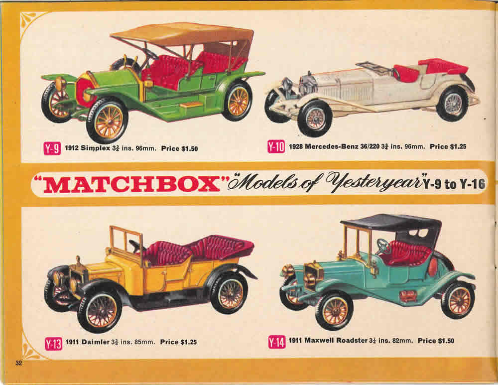 Matchbox Lesney 1968 catalog page 33, Yesteryear Y11, Y12, Y15 and Y