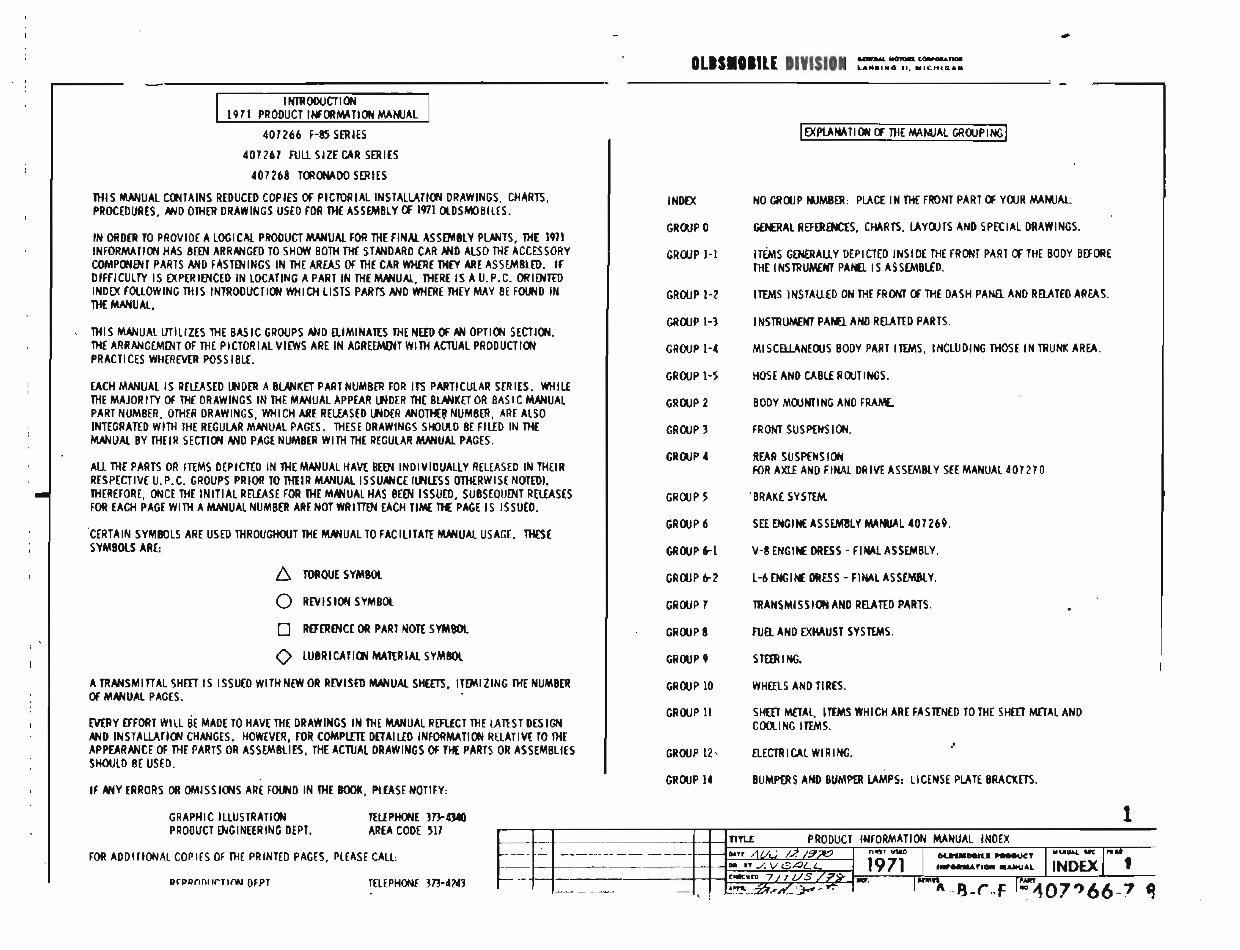 1971 Oldsmobile Assembly Manual Reprint Bound Cutlass 442 S Supreme F85