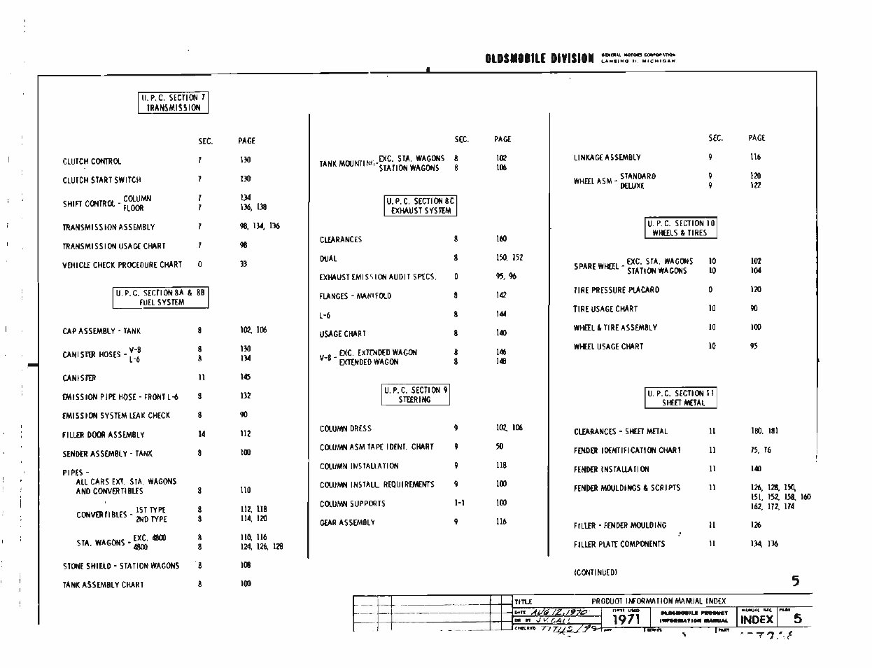 1971 Oldsmobile 442 Parts Catalog
