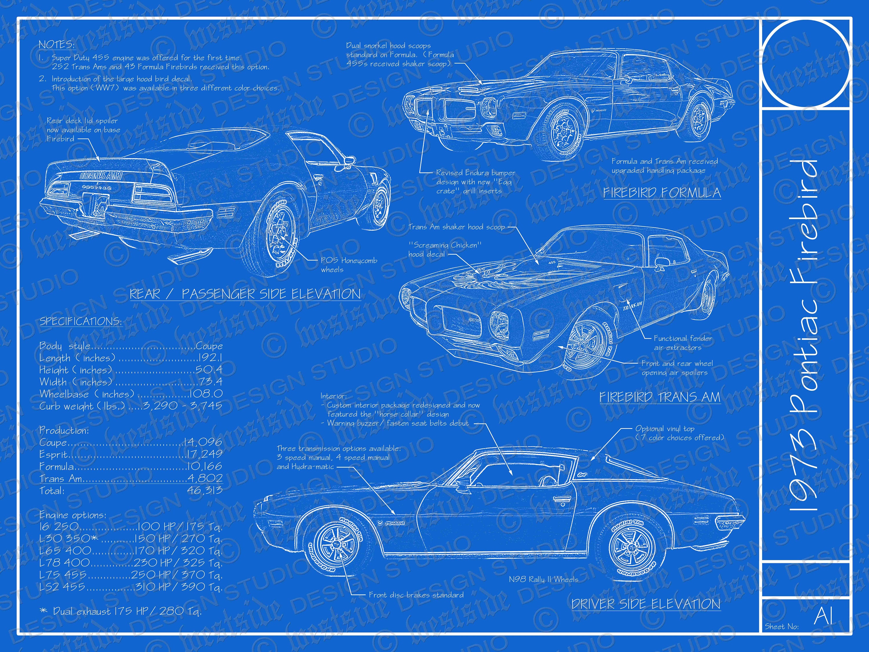 1973 PONTIAC FIREBIRD FORMULA 400 SPEC SHEET/Brochure/ eBay