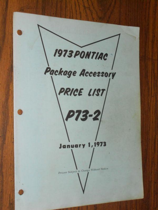 Buy 1973 PONTIAC ACCESSORIES PARTS LIST CATALOG ORIGINAL FIREBIRD T/A