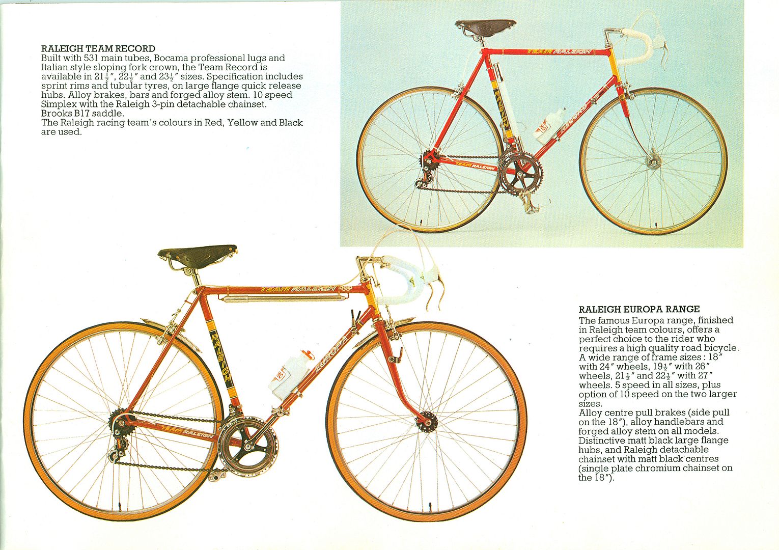 1974 Raleigh & Carlton Frame Catalogue Classic Factory Lightweights