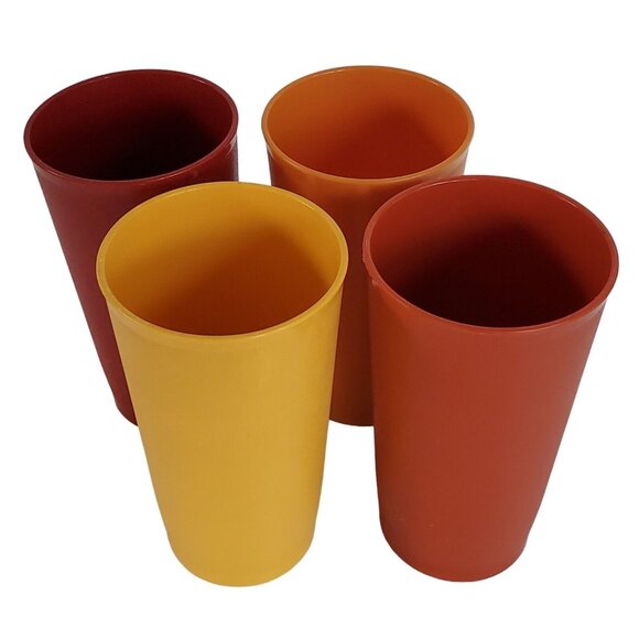 4 Vintage 1980's Tupperware Tumblers 12 oz Autumn Harvest 873