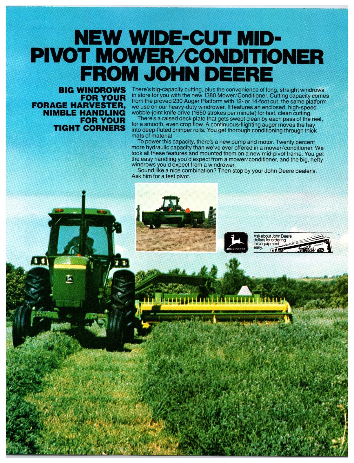 1980s John Deere Mower Conditioner Original Print Advertisement (8