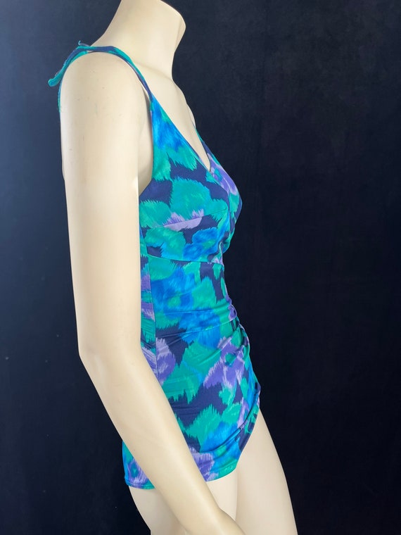 Vintage 1980s Maxine of Hollywood Blue Ruched Swimsuit, Size 10