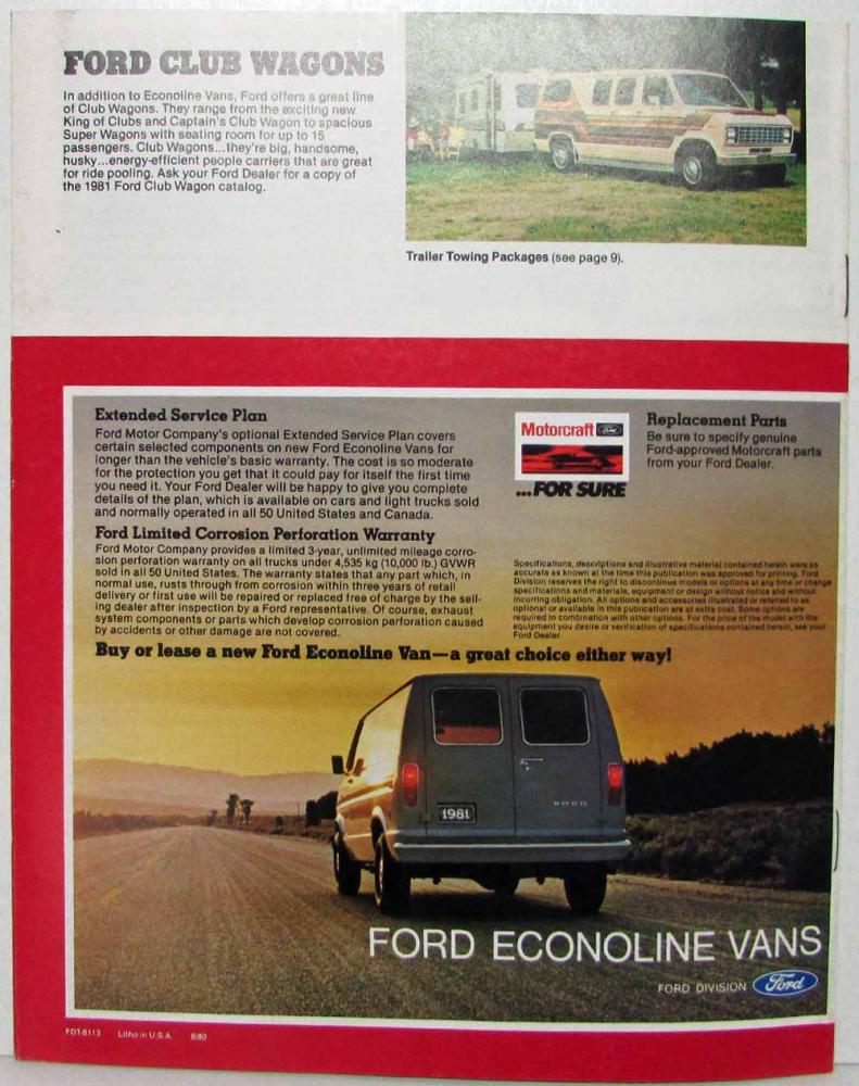 1981 Ford Econoline Vans Sales Brochure