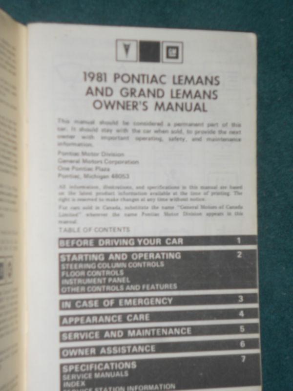 Buy 1981 PONTIAC LeMANS OWNERS MANUAL / ORIGINAL GUIDE BOOK! in Benton