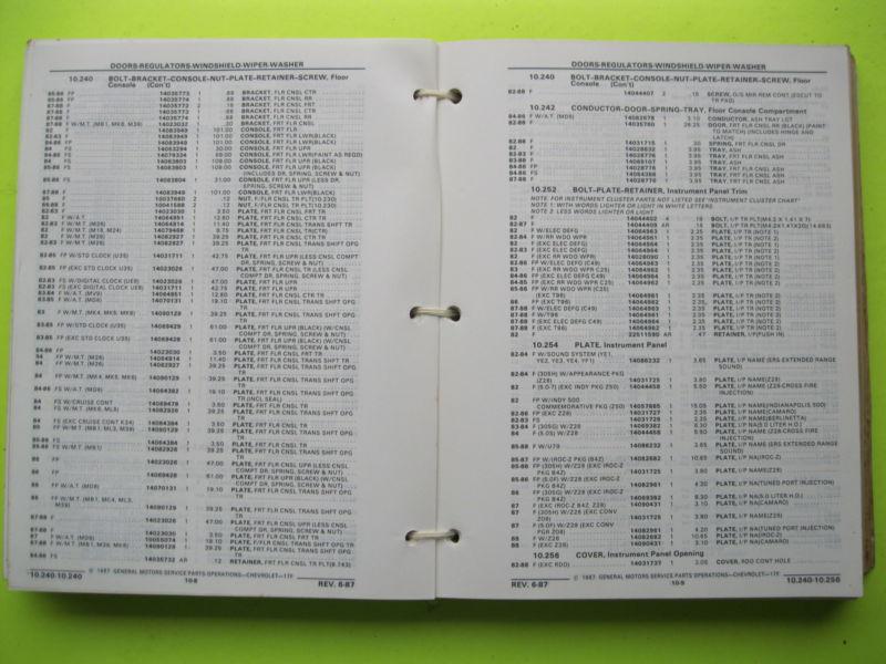 Buy 1982 1983 1984 1985 1986 1987 Camaro Parts &Illustration Catalog