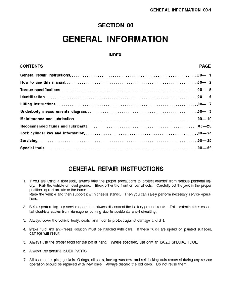 1986 1992 Isuzu Trooper II Factory Service Manual