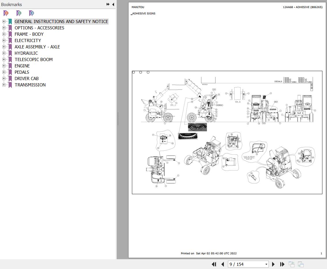 Manitou Telehandler TMT 55 XT TURBO Parts Catalog 806265