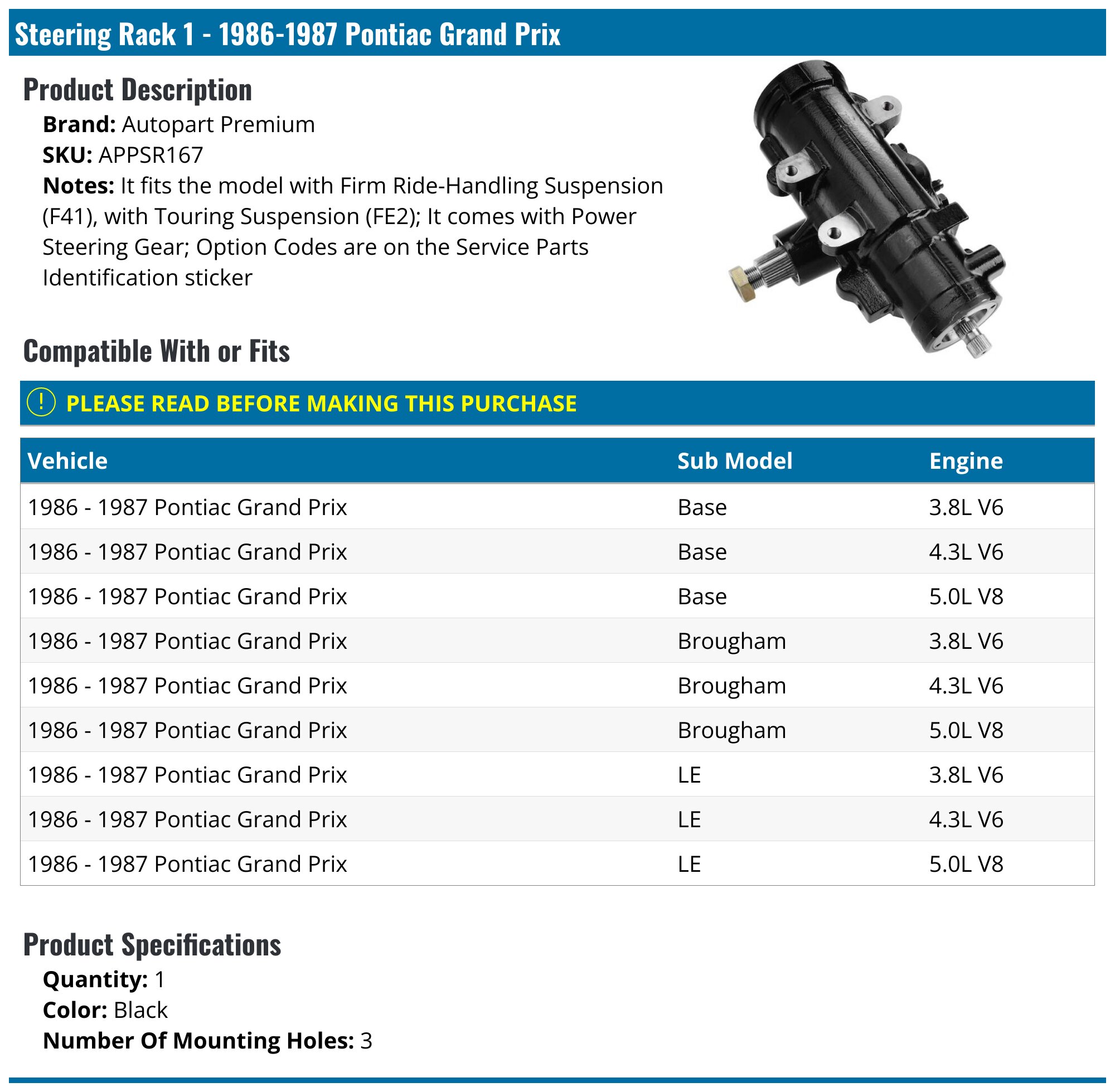 1981 1982 1983 1984 1985 1986 1987 Pontiac Grand Prix (See Details