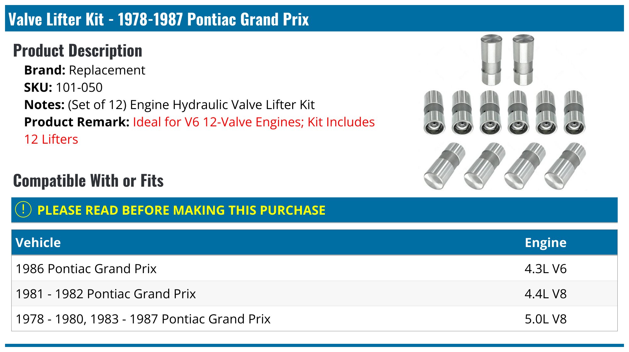 19781987 Pontiac Grand Prix Valve Lifter Replacement 101050