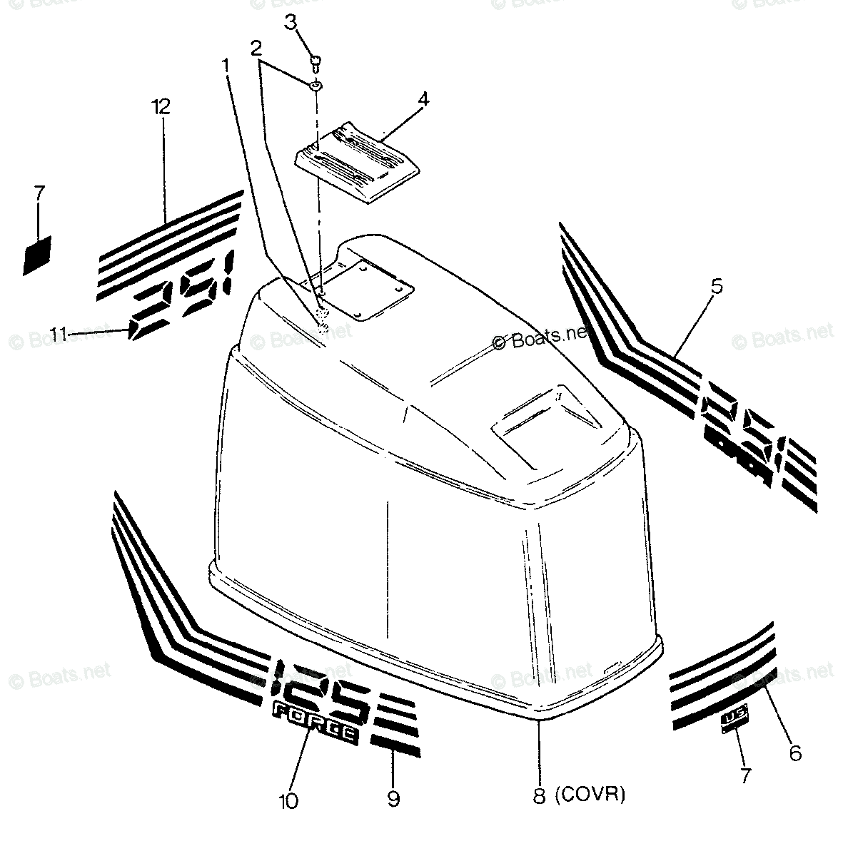 Force Outboard 1988 OEM Parts Diagram for ENGINE COVER (BAYLINER MODELS
