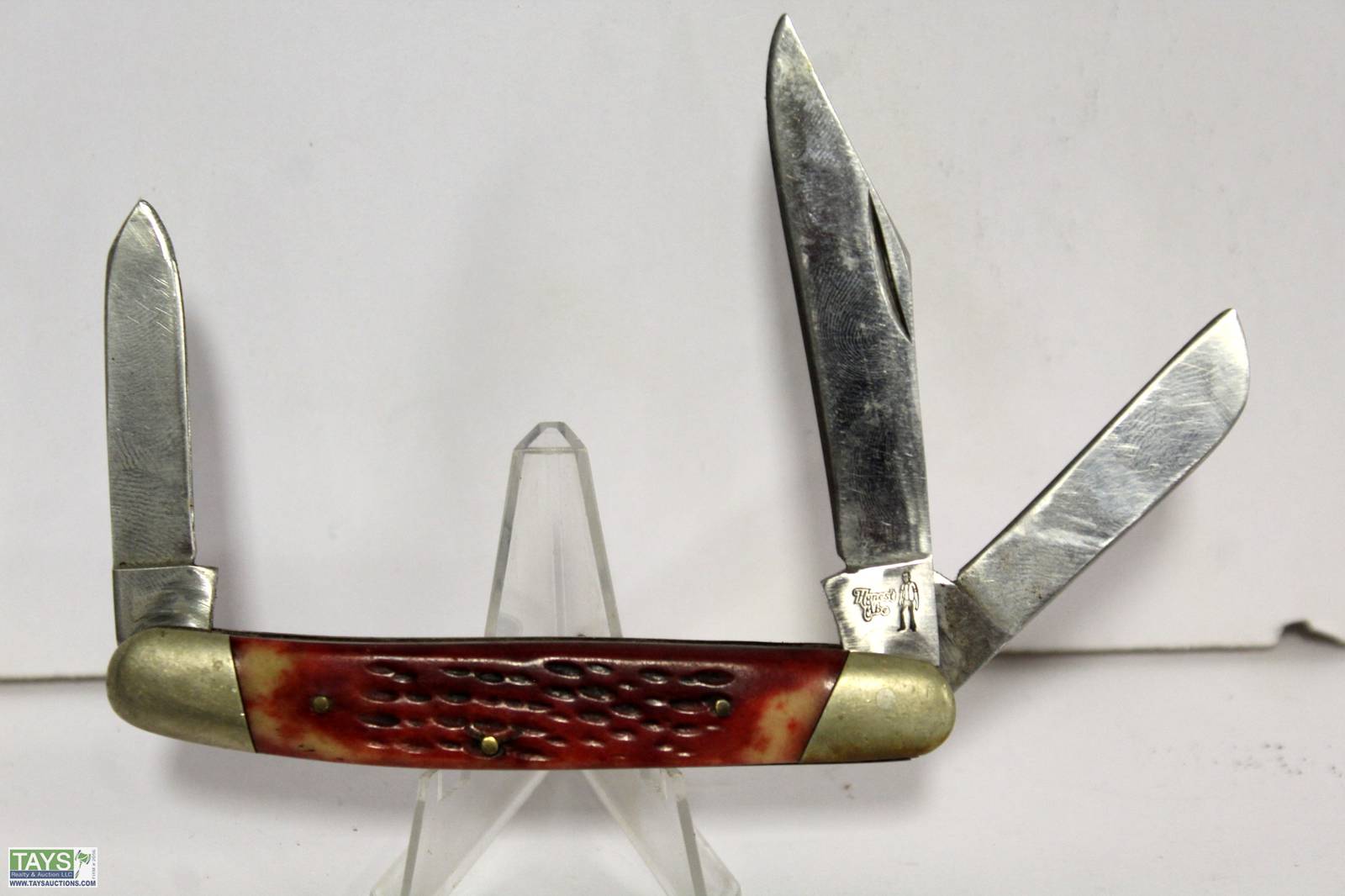 Honest Abe "Cattleman's Knife" 3Blade Stockman w/Jigged Red Bone Scales
