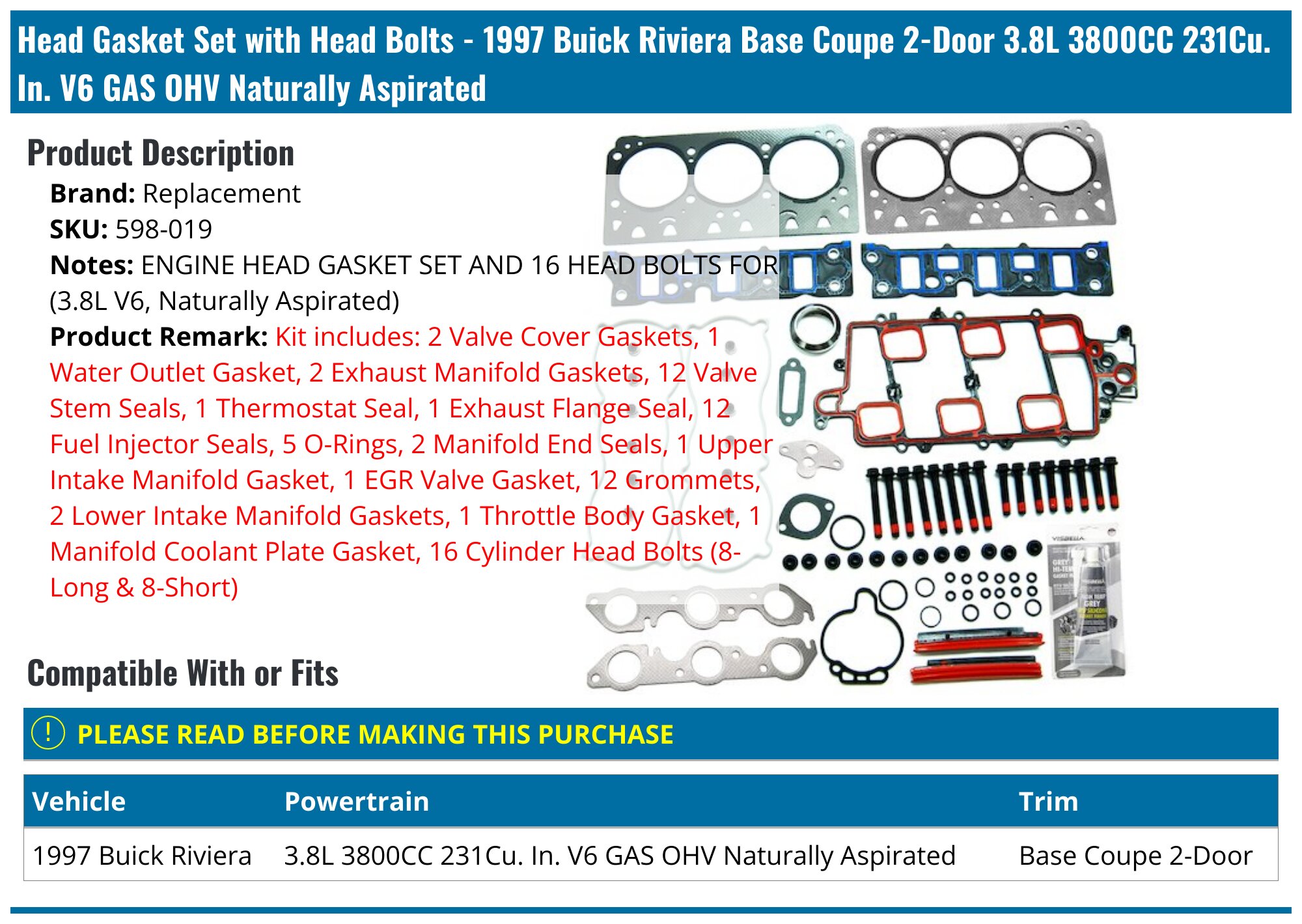 1997 Buick Riviera Head Gasket Replacement 598019
