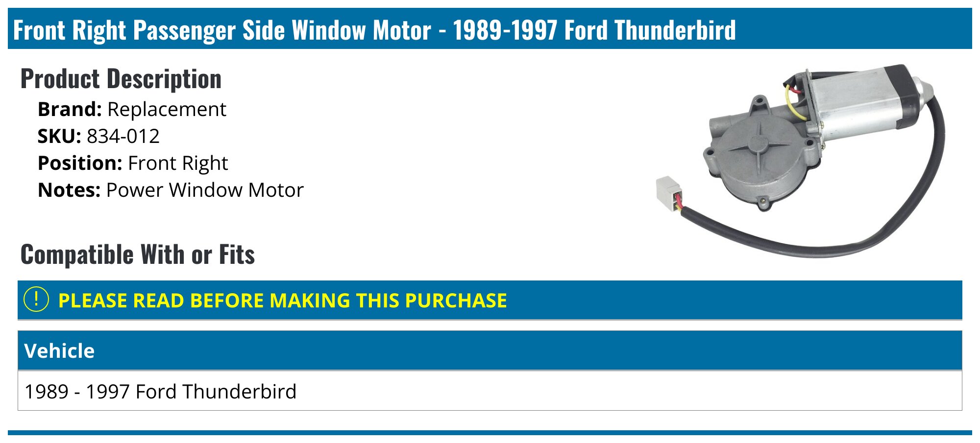 19891997 Ford Thunderbird Window Motor Replacement 834012