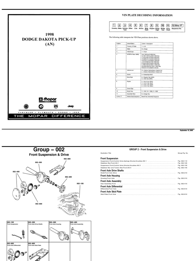 1998 Dodge Dakota Pickup (AN) Parts Manual OCR 447 Pages PDF