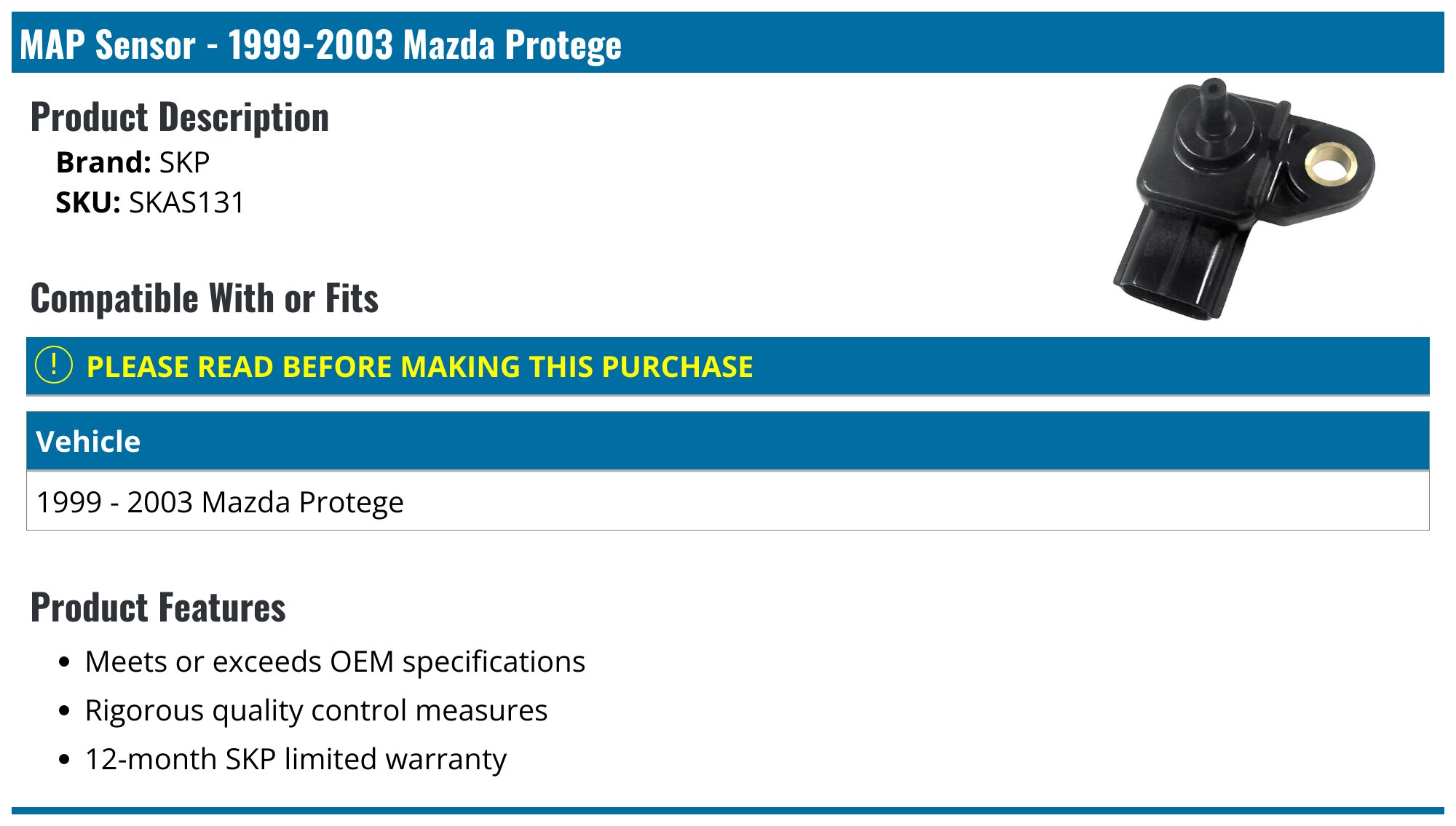 19992003 Mazda Protege MAP Sensor SKP SKAS131
