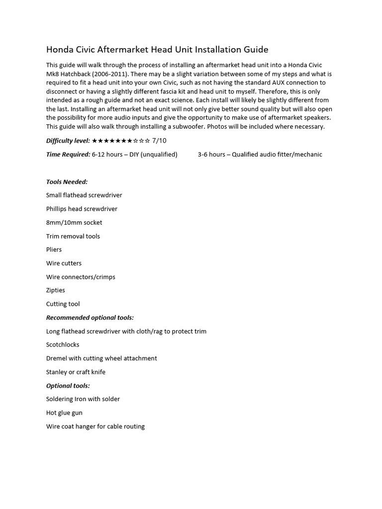 Honda Civic Aftermarket Head Unit Installation Guide Download Free