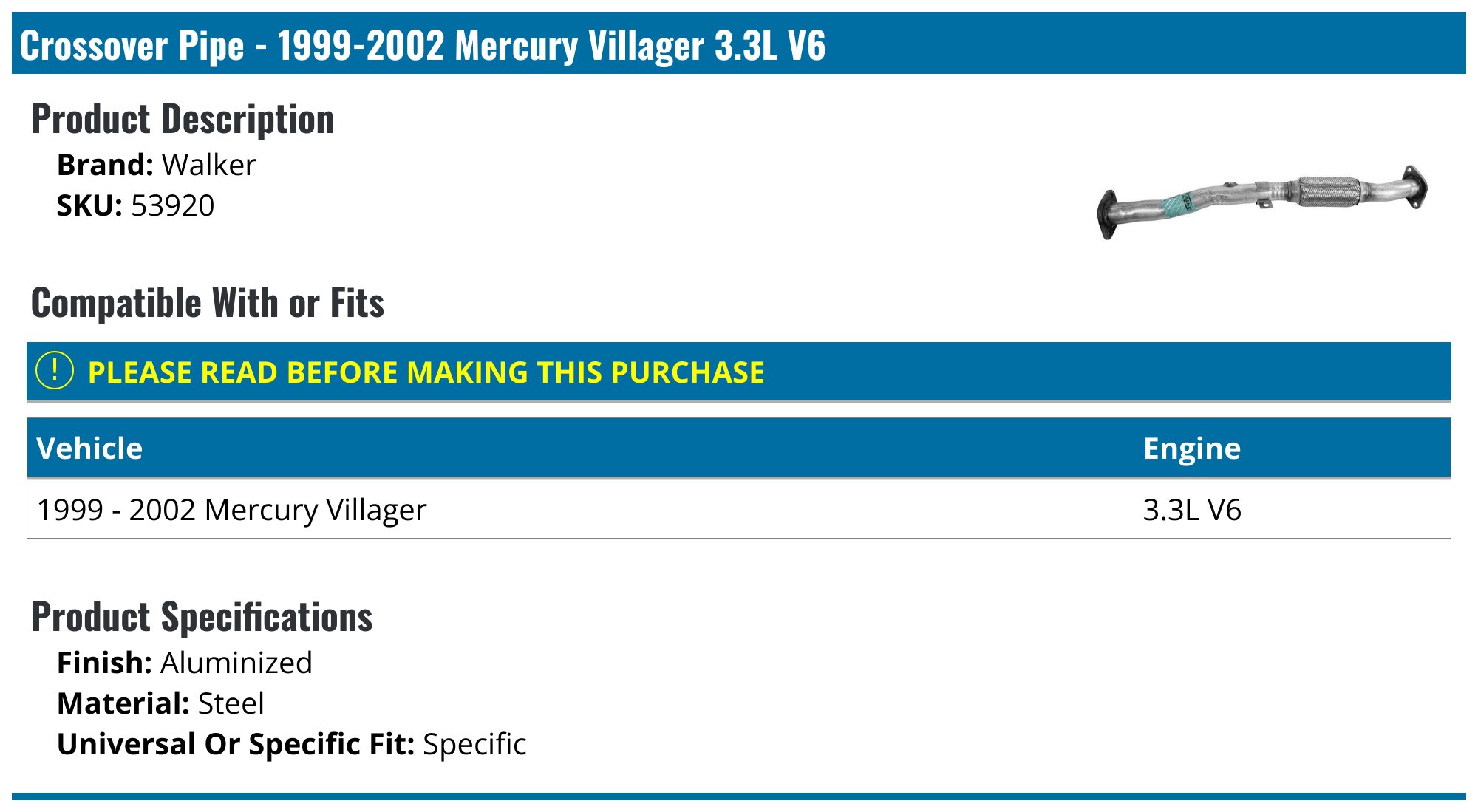 Múltiple de Admisión con Convertidor Catalítico para Mercury Villager