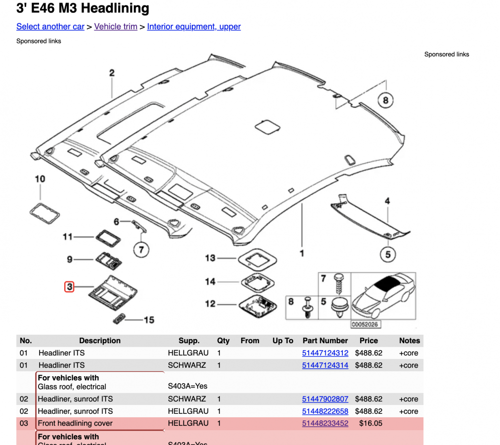 Interior Parts Needed To Go From Sunroof Non Na M3 Forums