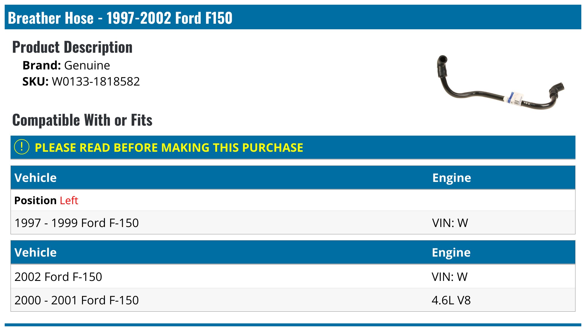 19972002 Ford F150 Breather Hose Genuine W01331818582